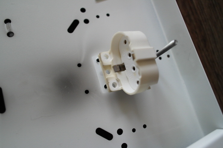문제는 선을 빼는 것인데 그냥 당기면 절대로 빠지지 않습니다. 전선 아래쪽에 보이는 작은 사각 구멍에 일자 드라이버 등으로 눌러주면서 선을 당겨줘야 빠집니다. 여기까지 안정기에 연결된 선 분리 완료!