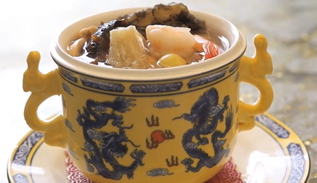 수많은 중국요리 중에서도 최고의 보양식으로 뽑히는 요리가 바로 불도장인데, 상어지느러미에서부터 전복, 해삼, 동충하초 등 30가지가 넘는 고급 재료들...이 진귀한 재료들을 조심스럽게 물에 대친 후 그릇에 정성스럽게 담아냅니다.