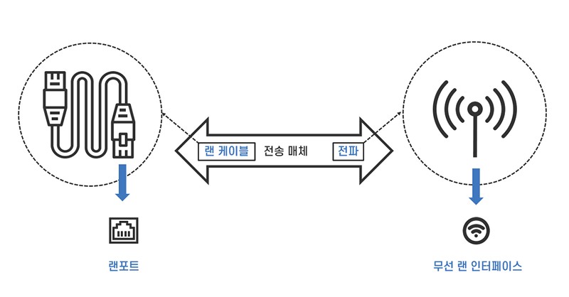 컴퓨터나 네트워크 장비의 랜포트 (LAN Port) 에 랜 케이블을 꽂아 서로 연결한 것이 유선 네트워크입니다.