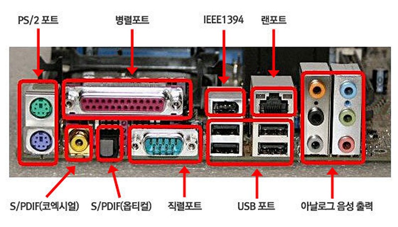 포트(Port)는 하나의 장비와 다른 장비를 연결하기 위한 통로, 즉 물리적인 장비들을 서로 연결하는 외부 인터페이스*를 의미합니다. 쉽게 말하면 컴퓨터에 각종 장비를 꽃을 수 있는 단자입니다.