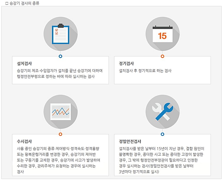 한국승강기안전공단은 승강기 이용자를 보호하고 승강기로 인한 위해를 방지하기 위해 승강기시설안전관리법 제13조 및 제13조의2에 의해 승강기검사업무를 수행하고 있습니다.