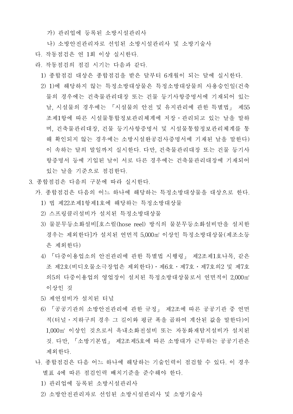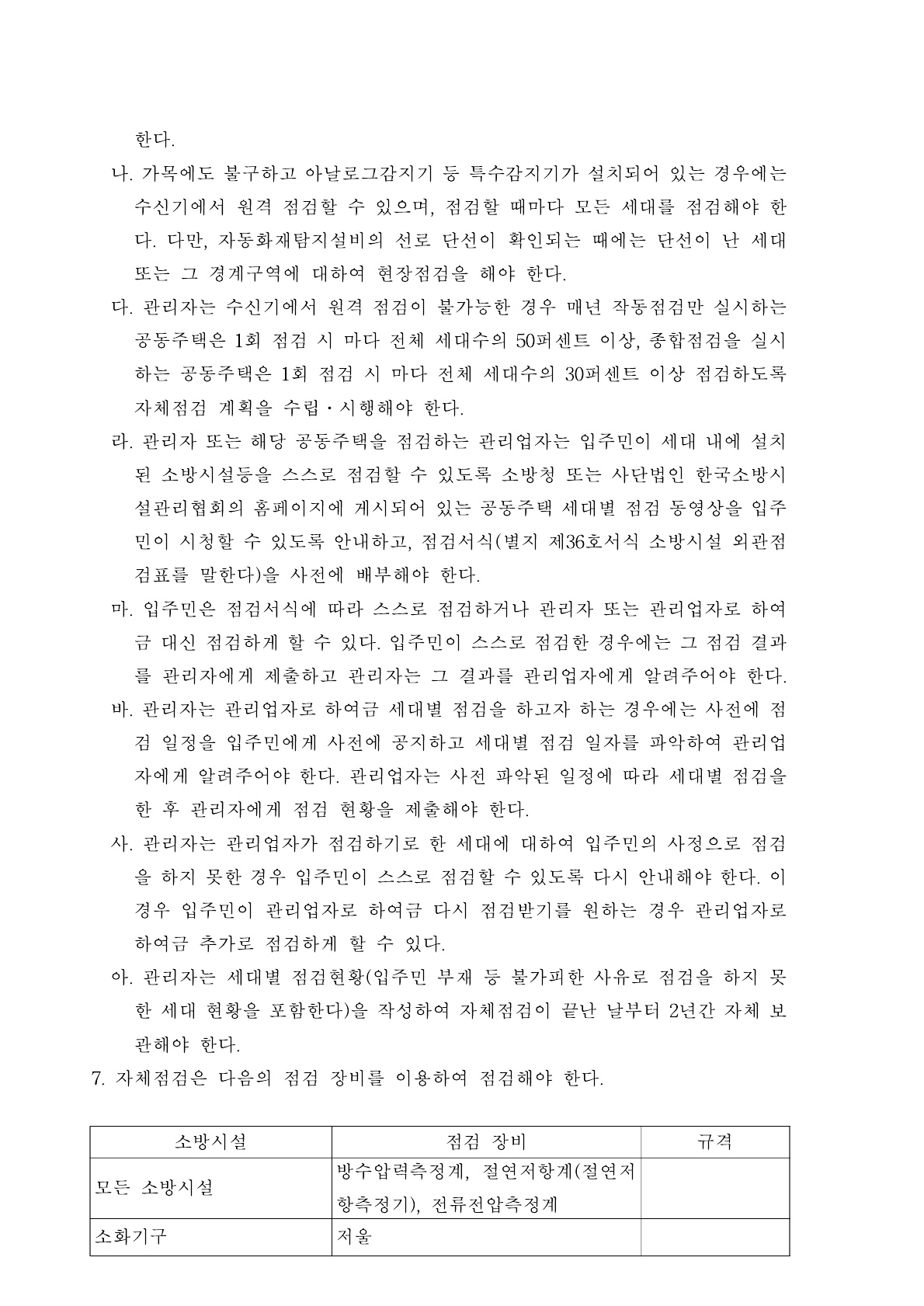 소방시설등 자체점검의 구분 및 대상, 점검자의 자격, 점검 장비, 점검 방법 및횟수 등 자체점검 시 준수해야할 사항(제20조제1항 관련) 입니다. 업무에 참고가 되시기 바랍니다.